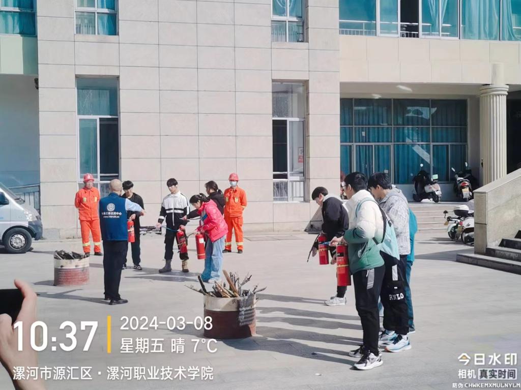 2024年3月8日,宿舍管理中心及全体物业服务人员在1#教实训楼进行了消防安全演练。通过演练掌握基本的消防安全知识,灭火、逃生方法。